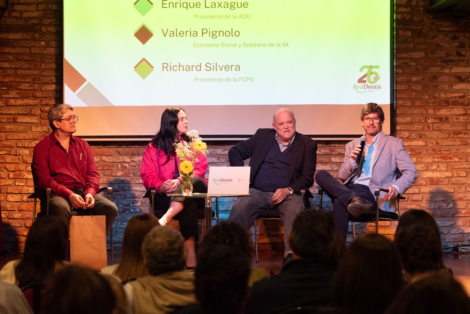 “A lo largo de sus 25 años, RedDentis ha crecido gracias a su vínculo con otras organizaciones”, comenzó señalando Fernando Braga, odontólogo responsable de ser el anfitrión del evento. Se invitó a representantes de instituciones clave como INACOOP, Asociación Odontológica Uruguaya, la Unidad de Economía Social y Solidaria de la IM y a la Federación de Cooperativas de Producción del Uruguay a que participar de un diálogo donde compartieron anécdotas y reflexiones sobre el impacto de RedDentis en el sector. Así lo hicieron Andrés Carrasco, vicepresidente de INACOOP, a Enrique Laxague presidente de la Asociación Odontológica Uruguaya, a Valeria Pignolo, coordinadora interina de la Unidad de Economía Social y Solidaria de la Intendencia de Montevideo, y a Richard Silvera, presidente de la Federación de Cooperativas de Producción del Uruguay.